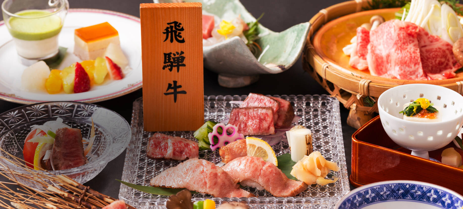 本物志向のお客様向け「飛騨牛会席」や2か月毎に献立を入れ替える「和食創作会席」、