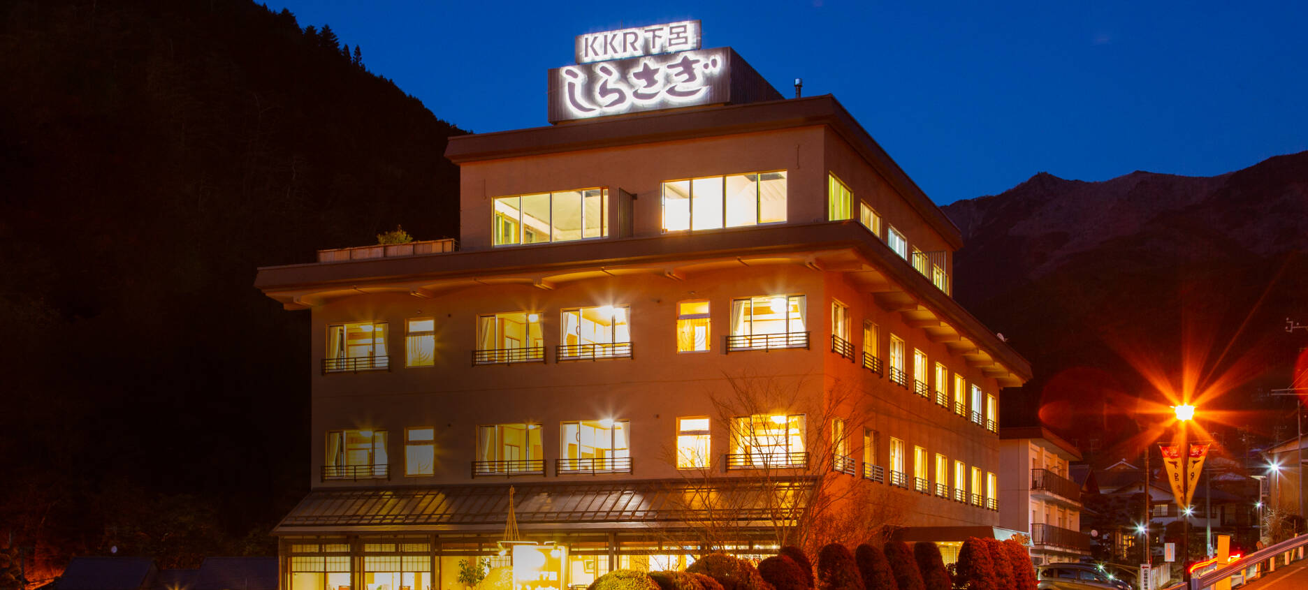 KKR下呂しらさぎは下呂温泉街の東側高台に位置します。和風調の大浴場、中央に池を配置した日本庭園をはじめ和風の趣にまとめた館内で、静かなひと時をゆっくりとお過ごしください。